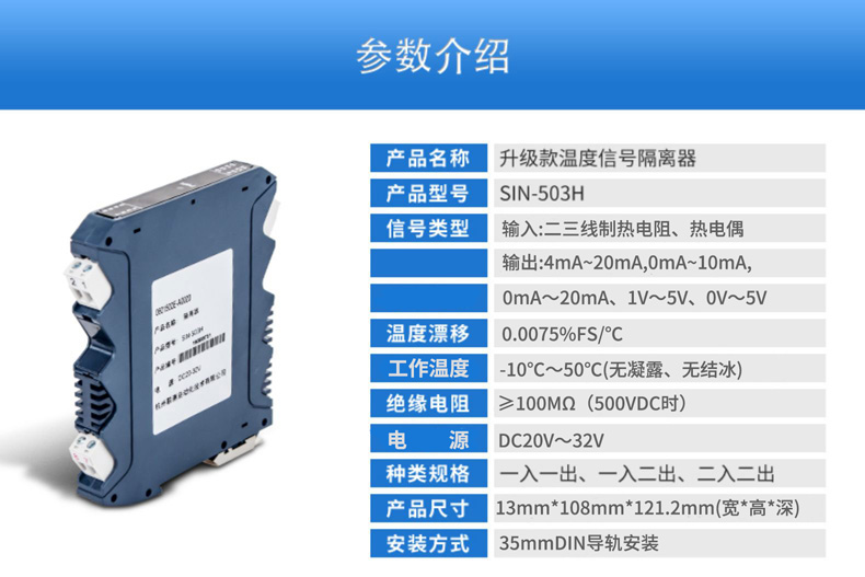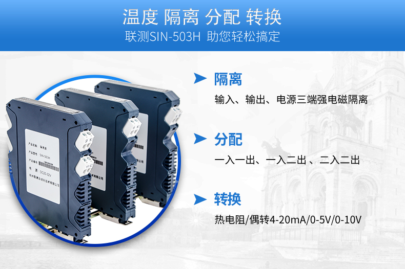 簡要描述:將PT100等熱電阻跟熱電偶信號轉(zhuǎn)換成各種電流、電壓等標準模擬量信號,可以與PC機、PLC、DCS等實現(xiàn)工控監(jiān)測連接。抗干擾能力強,遠傳不受其他設(shè)備影響。輸入、輸出選擇范圍寬,準確度高。電源可選擇,導(dǎo)軌安裝便于檢測與安裝。廣泛應(yīng)用于各種對溫度集中測量的監(jiān)控系統(tǒng)中。