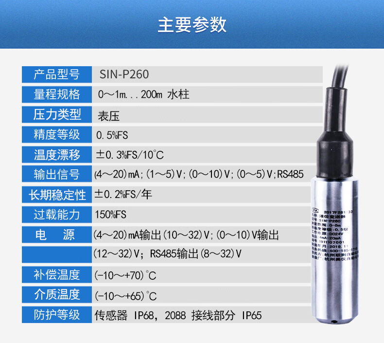 當(dāng)前位置:首頁 > 液位變送器 > 聯(lián)測_SIN-P260投入式液位計/水位計_消防水箱_污水池_水庫液位_