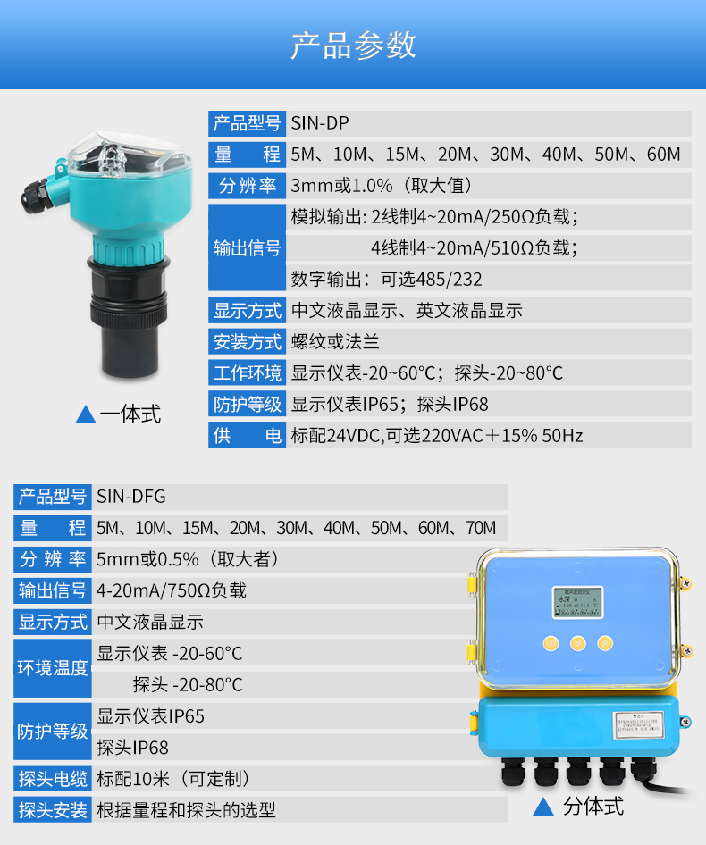 當前位置:首頁 > 超聲波液位計  >  聯測_SIN-DFG_基礎款_分體式超聲波液位計/物位計/水位儀 污水 料位液位測量_